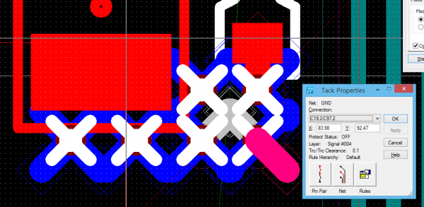 변환 과정에서 Thermal Spoke 속성이 Trace로 변환된 것 같습니다. Trace로 인식되었기 때문에 해당 부분만 일괄적으로 삭제할 수 있는 방법은 없습니다.