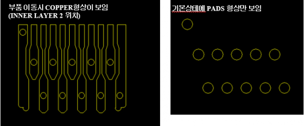 4-2 구조 pcb 설계를 위해 커넥터 DECAL을 2층에 설계하고 설계파일에 불러오니 PAD형상만 보이고 COPPER는 보이지 않는 현상이있습니다.