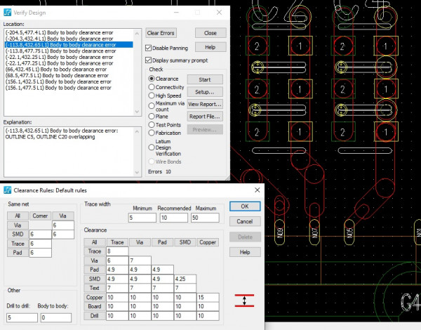에러 메시지로는 부품을 겹치게 배치하여 에러가 발생하고 있습니다.