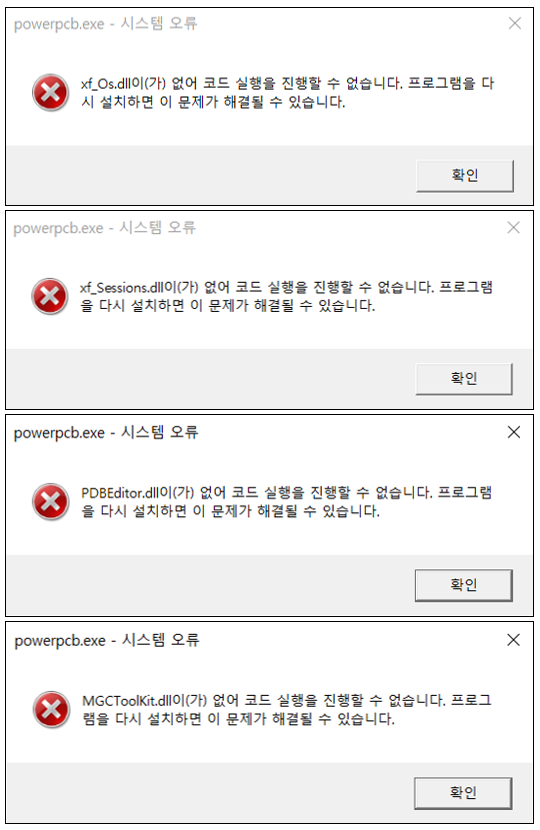 전명석 |저는 윈도우탐색기에서 PADS 파일을 더블클릭하여 실행 시 위와 같은 팝업창이 나옵니다. 실행파일 경로 설정 C:\MentorGraphics\PADS<사용버전>\SDD_HOME\common\win32\bin\powerpcb.exe 로 했음에도 불구하고 여전히 같은 증상이 재연됩니다. 어떻게 처리해야하는지 알려주세요.