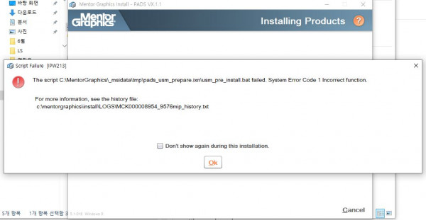 PADSVX1.1 버전은 Window10에서 정식 지원하지 않습니다.