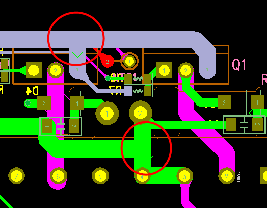 [Setup]-[Layer Definiton]에서 설정한 Routing Direction에 기초하여 방향이 변경되기 전 코너에서 발생합니다.