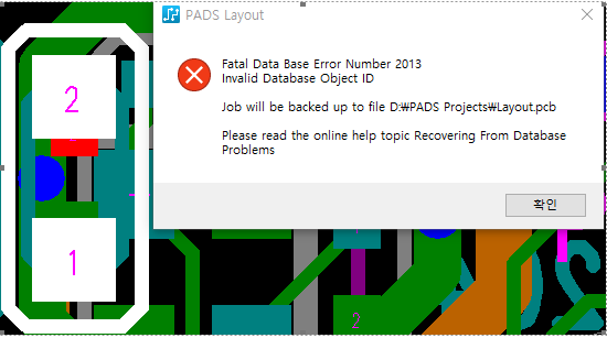 부품을 변경하거나 삭제 할 시 파일과 같은 Error가 발생하고 Layout이 종료됩니다
