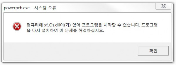 2. 팜업창 메세지 : 컴퓨터에 xf_Os.dll이(가) 업어 프로그램을 시작할 수 없습니다. 프로그램을 다시 설치하여 이 문제를 해결하십시오.