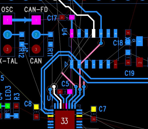 설정을 잘못 했는지.. 라우트 모드와 레이아웃 모드에서 배선 커넥션 선 표시가 다르게 표시되며,