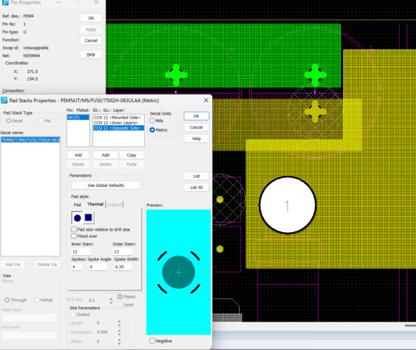 일단 Pin Padstack에 Thermal을 입력 하신건가요?