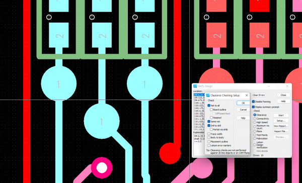 우준혁 |첨부 사진 보시면 cleance-setup 에서 same net 체크한거랑 다른 내용을 말씀하시는 걸까요?