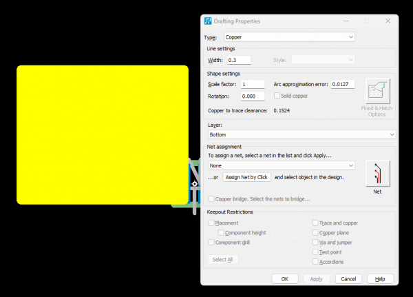Decal에 추가한 Copper에는 Net 할당이 불가능합니다.
