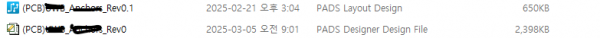 PCB 작업 후 파일 저장시 파일 유형이 PADS Layout Design 아닌 PADS Designer Design file 으로 변경되어 저장 됩니다.