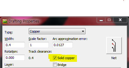 Solid Copper 적용시 : Copper의 Width와 Grid값을 무시하고 더욱 견고하게 Flood된다.