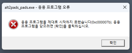 프로그램 실행 시 아래와 같은 오류로 실행이 안되어 문의 드립니다.