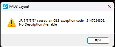 PADS Layout 내의 Keepout 설정 시 간헐적으로 아래 에러가 발생하며,
