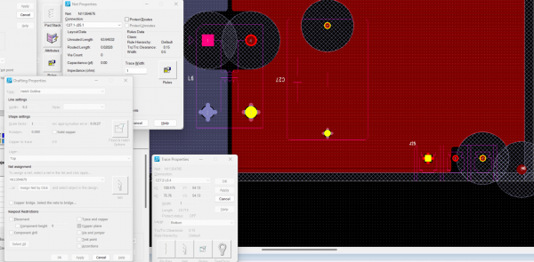 혹시 Solder등의 Copper에 Net가 Assign되어 있으면 Assign된 Net를 지우시고, 찾기 어려우시면 모든 디스플레이를 끄고 N11354675 Net만 키신다음 찾아보시기 바랍니다.