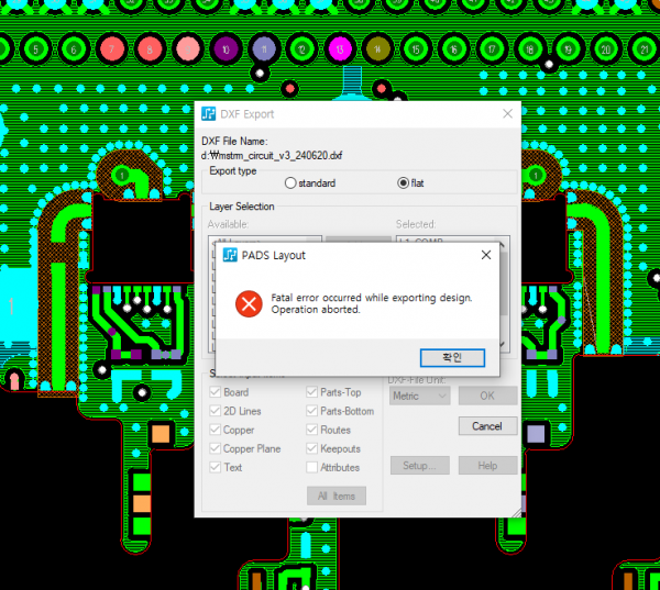 dxf export type flat 설정시 에러