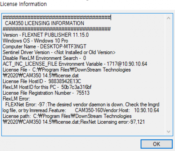 cam 350 14.5 라이센스 서버 끊김 문의