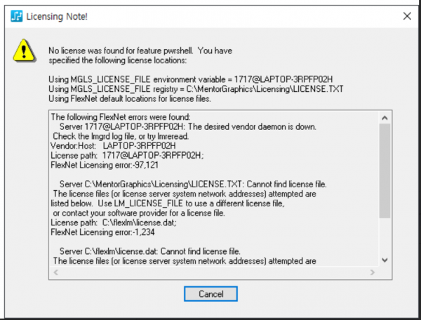 에이치투오코리아 장영호 입니다. 아래와 같이 PADS 라이센스 오류가 발생되어서 확인 요청 드립니다.