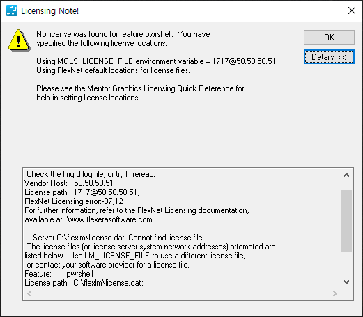 기간만료 알림과 같은 경우에는 PADS 라이선스는 영구 라이선스이긴 하나 Siemens(구 Mentor) 정책 상 라이선스 파일이 나뉘어 나옵니다. floting 라이선스와 같은 경우에는 server pc에서 라이선스 교체 작업을 해 주셔야 합니다.