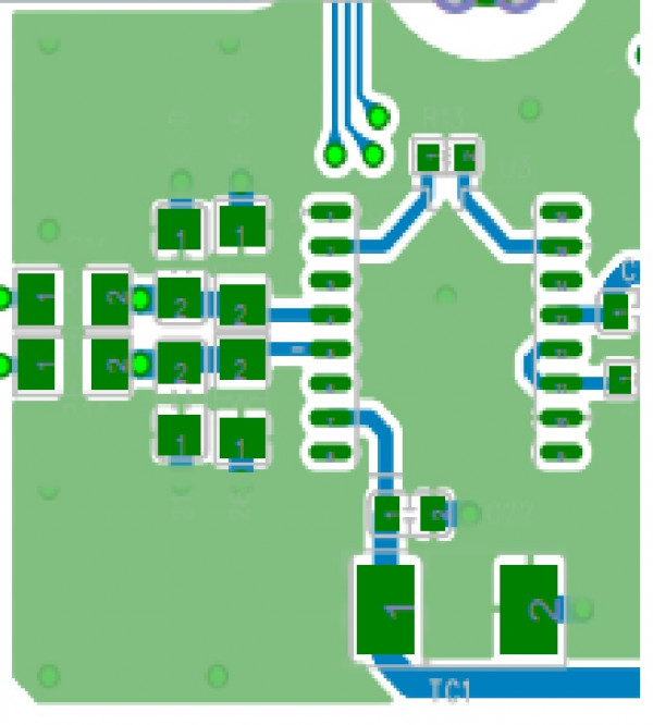 첨부 파일에서와 같이 그라운드 Via들이 copper에 가려져서 잘 안보입니다.