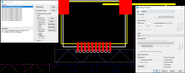 부품과 Keepout영역이 겹치지 않으니 Verify Design에서 에러로 나오지 않았으면 좋겠는데, 이러려면 어떻게 해야 하는지 여쭈어 보고 싶습니다.