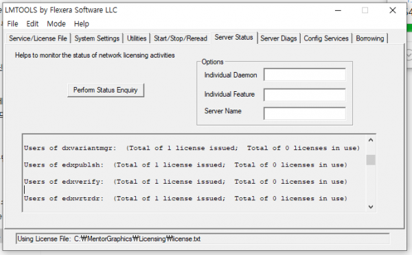 현재 회사에서 사용하는 네트워크 라이센스 메인PC를 새 PC로 교체하고 PADS를 새로 설치하여 쓰고있는데 LM TOOLS에서 라이센스 확인 시 1개로 확인됩니다.