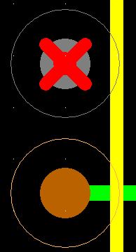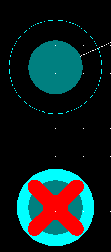 Pin이나 Via가 내층 Copper plane 또는 Trace와 연결되지 않을 때 pad가 사라진 Anti-Pad 형태로 표시됩니다.