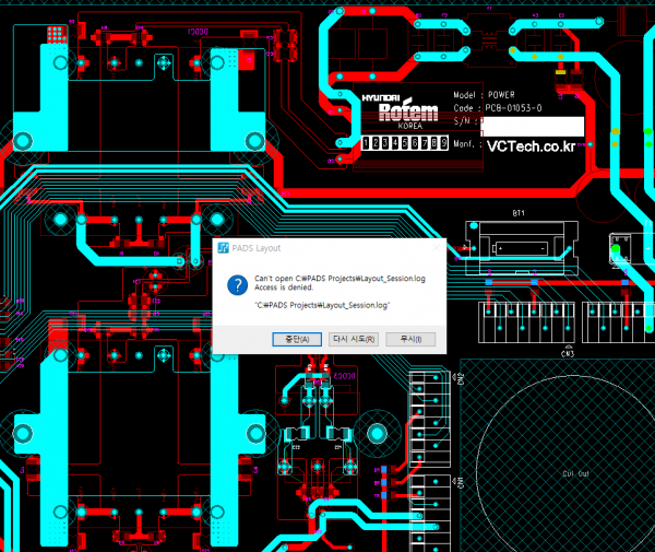 해당 메시지는 PADS Router를 단독으로 실행하거나 PADS Layout에서 PADS Router를 연동하여 실행할 때 발생합니다.