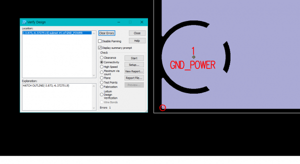 verify Design 체크 후에 cam data  생성시에 발생하는 에러입니다