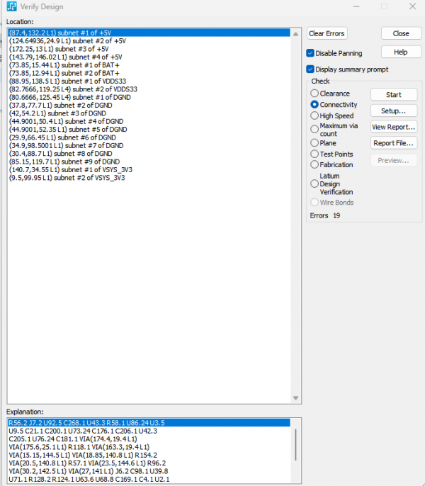 첨부된 사진과 같이 error가 발생하였는데 error 표시가 있는 곳과 그 라인을 따라가도 끊어진 부분을 찾을 수 없어 문의 드립니다.