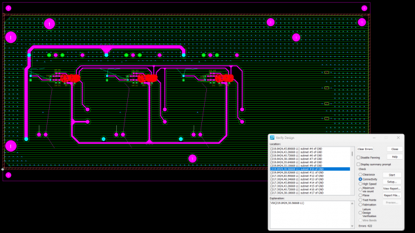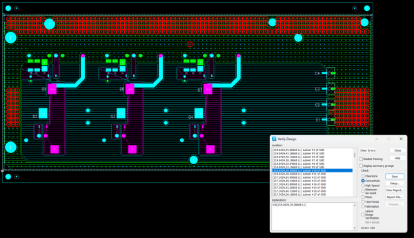 GND Net로 설정된 Copper Plane 상에 Stitching Via를 배치한 뒤 Connectivity Check를 실행한 결과,
