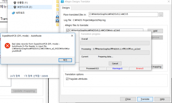안녕하세요. pads 에서 allegro data 변환시 문제가 있어 문의드립니다.