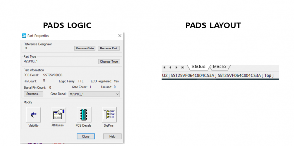 PADS LOGIC, LAYOUT 사용에서의 PART DECALS 이름 통일의 건으로 문의드립니다.