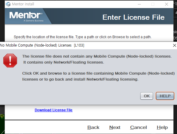 라이센스 파일 (license.txt)를 선택하여 next를 누르면 첨부와 같은 메시지가 뜹니다.