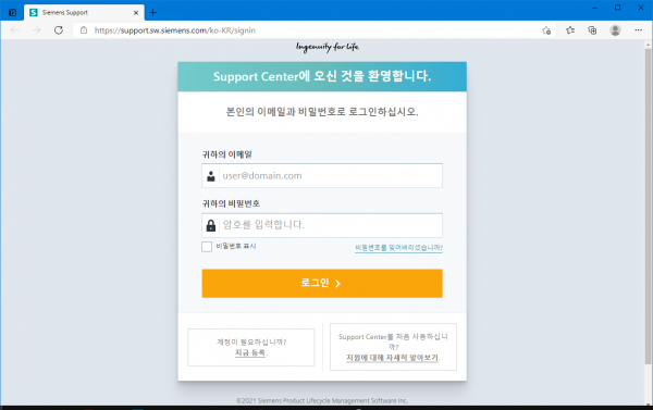 SIEMENS SUPPORT 창이 나오고 나서 실행이 됩니다.(첨부파일 참고)