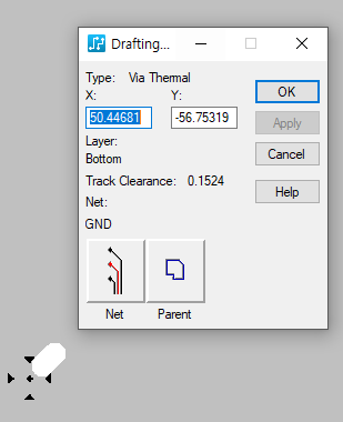 비아의 속성을 보면 via thermal 이라고 나오는데, 개별 삭제도 되지 않습니다 .. (삭제 하여도 pour 하면 다시 via가 생기는 것으로 보입니다)