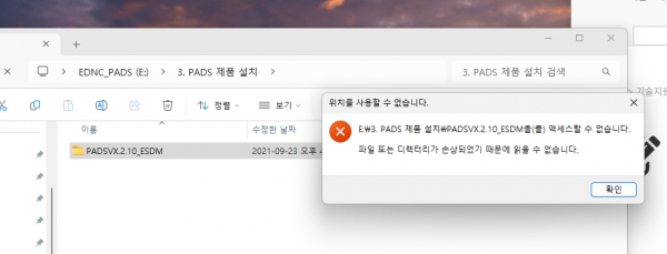 아래와 같이 USB 폴더 진입시 에러가 떠서 설치가 불가 합니다.